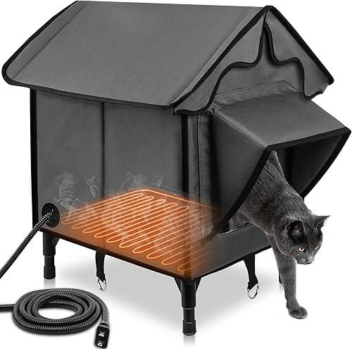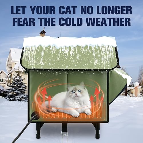 Waterproof and Warm Material: The weatherproof and windproof heated cat house is made of insulating materials of PVC, oxford cloth, aluminum foil, and pearl cotton. It is safeguarded by thermal aluminum foil lining against bad weather