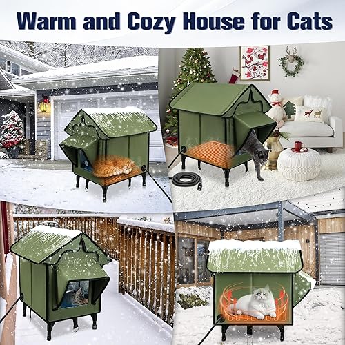 Outdoor Heated Cat House: This heated house's thickened and slanted roof design prevents water seepage and snow and ensures plenty of space. A cat has a wonderful outdoor heated cat bed that will feel cozy and stay warm for easy entry and exit