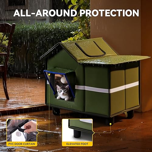 Tough, Warm & Built to Last: Made with thick, claw-resistant PVC-aluminum material and heavy-duty 600D Oxford fabric for superior insulation that stands up to weather and wear. The hollow-board design locks in warmth without trapping moisture—so your cat stays cozy and dry.