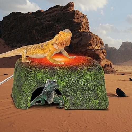 NO ODOR RESIN MATERIAL - Reptile hide cave made of safety resin materual, strong and durable and easy to clean. The top platform will also be heated and become warm, great for basking or resting.