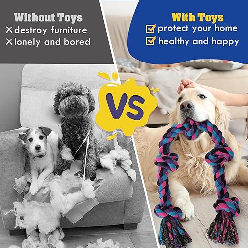 Perfect Dog Gift: Colorful design is perfect as a birthday or holiday gift for your dogs. It's more than just entertainment, it's also a means of exercise that helps keep our canine companions healthy. Rope dog toys are consumable and not truly indestructible. If your dog is a very aggressive chewer, we recommend play with supervision. If you are not satisfied with the use, you can contact us at any time and we will respond within 12 hours
