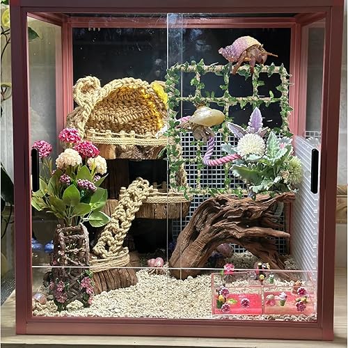 HERMIT CRAB ACCESSORIES:The reptile enclosure measures 7.8*7.8 inches and comes with 4 suction cups and 3 natural weaves and a hemp rope. Equipped with 4 sturdy suction cups around the perimeter, it can be attached to glass, plastic, acrylic or any other smooth wall surface, and can be easily installed inside the hermit crab tank.