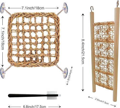 【Hermit Crab Toys Kit】: Our hermit crab climbing toys set includes 1 seagrass hammock, 1 straight ladder bridge, and 1 small cleaning brush. Perfect for small animals to play with. It is designed to mimic your pet's natural habitat, encouraging their natural climbing behaviour for a healthier and happier pet