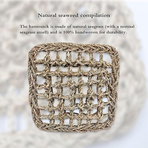 【Hermit Crab Hammock】: The seagrass hammock measures 7.3*7.3 inches, hand-woven from natural seagrass, soft yet strong and sturdy, a great addition to any pet's habitat. Equipped with 4 strong suction cups around the perimeter, it can be attached to glass, plastic, acrylic or any other smooth wall surface, and can be easily installed inside the hermit crab tank