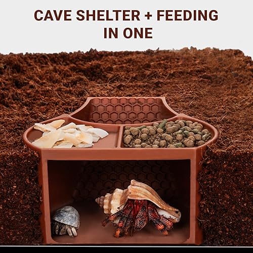 2-in-1 Hide and Feeder Dish – Designed for Hermit Crabs Smart combo of shelter and feeding space! Give your crabs a cozy place to hide and two shallow dishes (0.15in deep) to serve multiple food types in one setup.