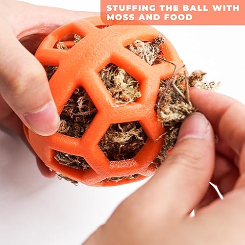 【Sphagnum Moss】: Enhance your hermit crab's feeding experience by mixing their food with sphagnum moss and placing it inside the ball. This natural setup encourages their instinctive foraging behavior, making feeding time more enjoyable and enriching for your hermit crabs.
