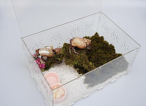 Package Include: You will receive a package containing an 11.81-inch x 7.87-inch x 5.9-inch hermit crab tank (not pieced together for installation, needs to be installed to be used) and a 7 inch adjustable hermit crab climbing toy, perfect for hermit crab to climb! In addition, we'll give you 3.5oz hermit crabs substrate for hermit crab a good habitat home.