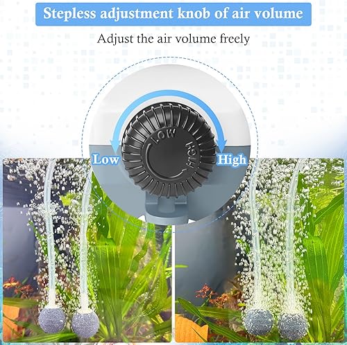 Complete Accessories: Comes with everything you need, includes: Return Valve*2, Air Stone*2,Air Tube (2 x 4.9ft)*2, Suction Cup*2, Air Regulating Valve*2, T-Connector*1, Air Intake Cotton*1. Original quality, professional manufacturer.