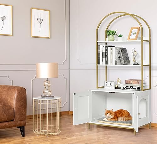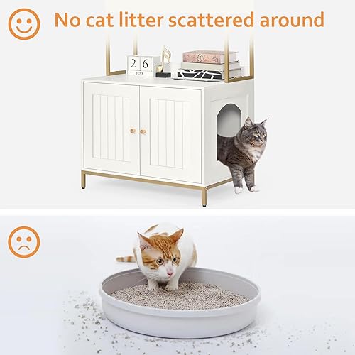 Modern style: The cat litter box cabinet features black finish and metallic gold-colored metal frame, adding an elegant and stylish touch to your home decor. Its minimalist design and exquisite detailing inject a touch of luxury and sophistication into your living space