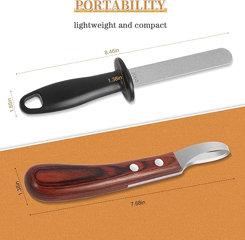 Hoof Knife Kit:The package Includes a hoof knife and a hoof knife sharpener.They are all made of high-quality material, ensure durable and sharp
