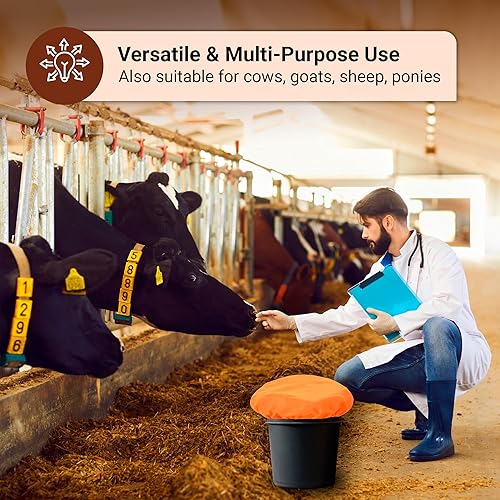 Great for Multiple Livestock Animals: While perfect as an insulated bucket cover for horses, it is also suitable for cows, goats, sheep, ponies, pigs, and large dogs. Whether feeding in barns, stalls, or outdoor environments, this cover helps keep your feed bucket clean and organized.