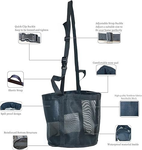 For horses of any size: Our feed bags come in sizes suitable for Mini Horses, Ponies, Average-sized Horses, and Draft Horses, catering to a wide range of equine sizes from the smallest to the largest.Let each size of horse feed alone without looting, making sure each horse gets enough nutrition.