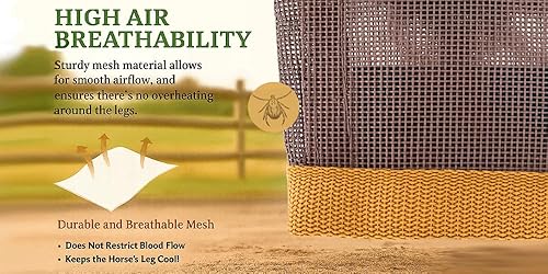 Lightwight, Practical Design For Easy Stable Management; Each breathable horse leg wrap is crafted from flexible yet durable interwoven polymer mesh that resists snags and tears while staying lightweight for effortless daily use; Pasture fly boots for horses are easy to put on and remove, offering busy horse owners a reliable horse leg wraps set of four that protects your horses while streamlining daily care routines;