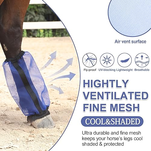 Roomy Design: Loose-Fit design horse fly boots are made of fine, breathable mesh that provides plenty of room for the horse's legs to breathe without chafing, rotates freely without falling off while keeping the horse's legs cool and comfortable