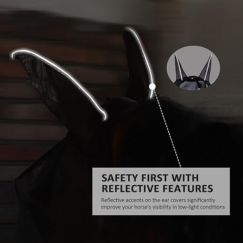 Safety First with Reflective Features: Reflective accents on the ear covers significantly improve your horse's visibility in low-light conditions, providing an extra layer of safety during early morning or evening routines.