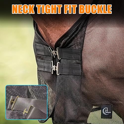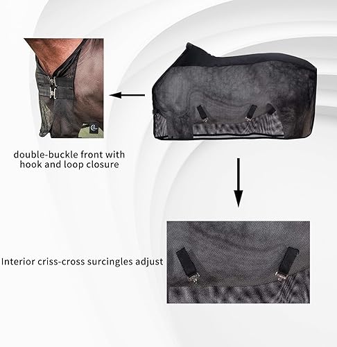 Adjustable Size: The horse fly sheet fits for about 70-72inch, it features 2 adjustable metal buckles on the neck and low-cross surcingles on the abdomen, allowing for customizable adjustment and prefect fit, preventing the blanket from shifting or becoming loose during movement