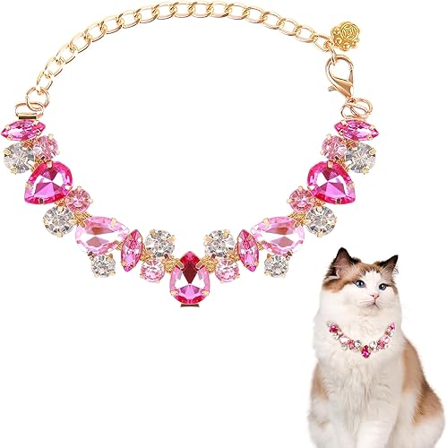 Elegant and Charming: The dog cat chain necklace is designed in gold link style, matching with the pet paw and pink diamonds delicate in appearance and distinctive in style, making your cat look more lovely and eye catching,it's suitable for cats, kittens, Chihuahua, Dachshunds, Bichon Fries ,and small dogs and other small medium pets as well.