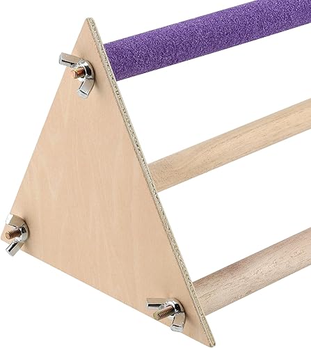 EASY TO INSTALL - The triangular plate of chicken perches roosting has holes on three sides that correspond to the three brackets. After they are properly matched, adjust them to the appropriate tightness using metal wing nuts.
