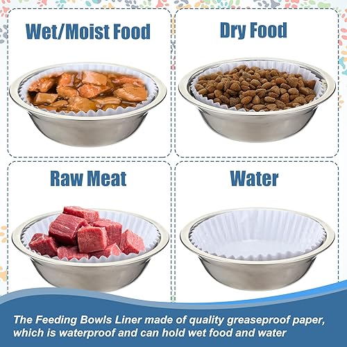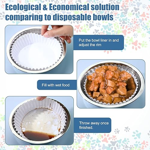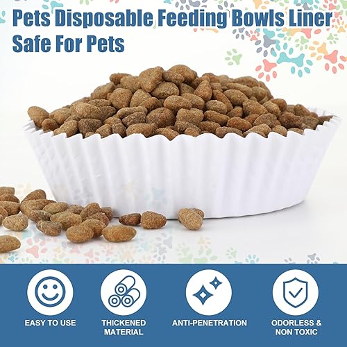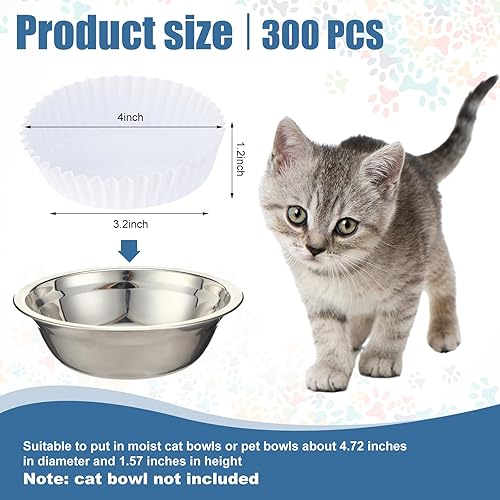 Rich Quantity: there are 300 white disposable pet food bowl liners, rich quantity can fully meet pets' daily use and replacement needs, also suitable for sharing with other people who have small pets, please note that the package only includes the liner, not the bowl