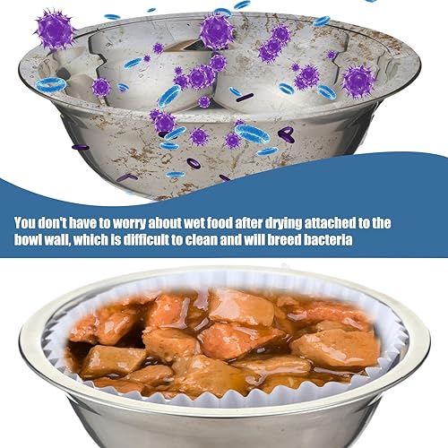Proper Size: these food bowl liners measure approx. 4 x 1.2 inches/ 9 x 3 cm, you can place them on pet bowls measuring approx. 4.72 inches in diameter, and approx. 1.57 inches in height, please note the size before ordering to avoid buying the wrong one