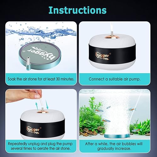 [hygger Aquarium Air Stone] This air stone has evenly distributed air holes, anti-clogging, and low noise, can produce a large, mist-like ultra-fine bubbles. Great to add oxygen to your aquarium, pond, and hydroponics growing system, increase oxygen levels. It is a great way to enliven the aquatic lives