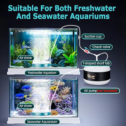 [Complete Accessories] The air stone measures 2" Dx 0.79" H. Fits standard airline tubing with inner diameter of 3/16". Recommended air pump power: ≥ 3 watts (air pump not included). The set includes 1x air stone, 1x 2m air hose, 1x check valve, 1x tee, 1x suction cup, and 1 user manual. If you have any questions about the product, please contact us and we will be happy to assist you.