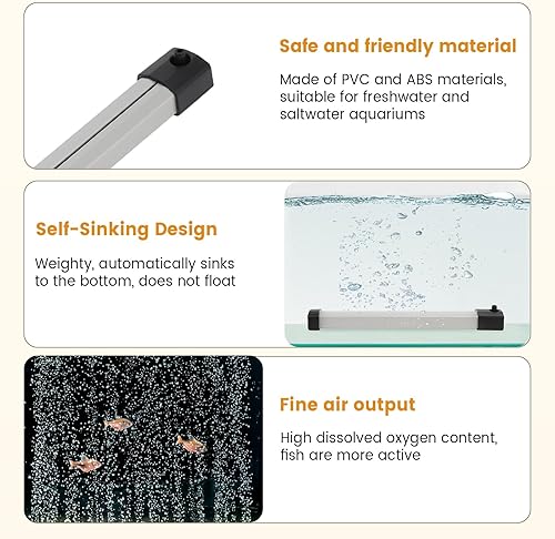 Durable and Self-sinking Design: Constructed from Premium PVC and ABS materials, the fish tank bubbler is designed to be heavy enough to stay submerged at the bottom of the tank without floating.