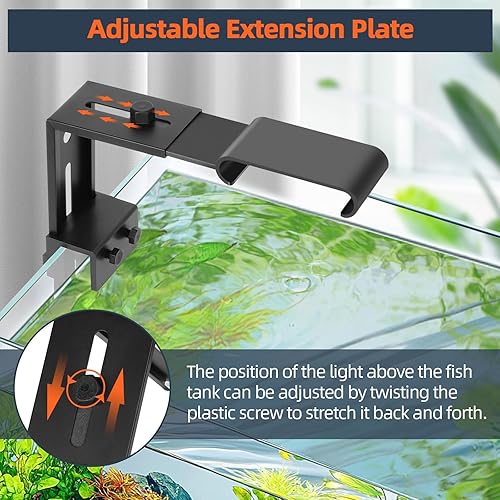 Adjustable Extension Plate:The position of the light above the fish tank can be adjusted by twisting the plastic screw to stretch it back and forth
