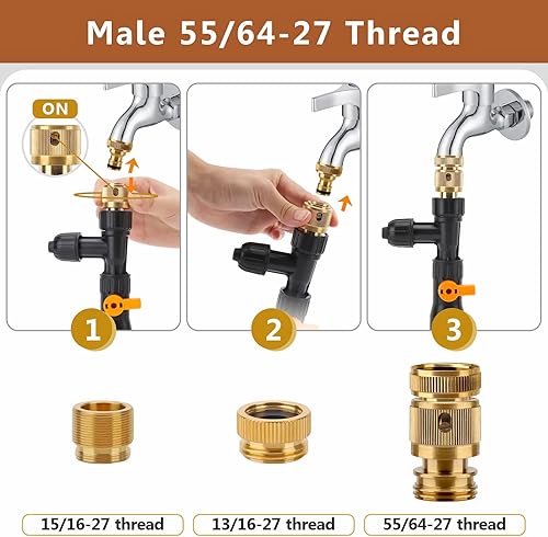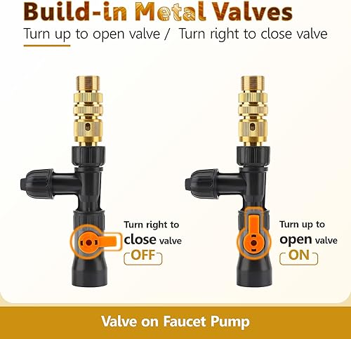 Fits for most faucets: build-in 3 size metal adapters that can fits female 15/16-27 thread, 13/16-27 thread or a male 55/64-27 thread, constructed with on/off valve, the valve on the faucet pump can be control water flow direction. The valve on the gravel tube can be adjusted total water flow