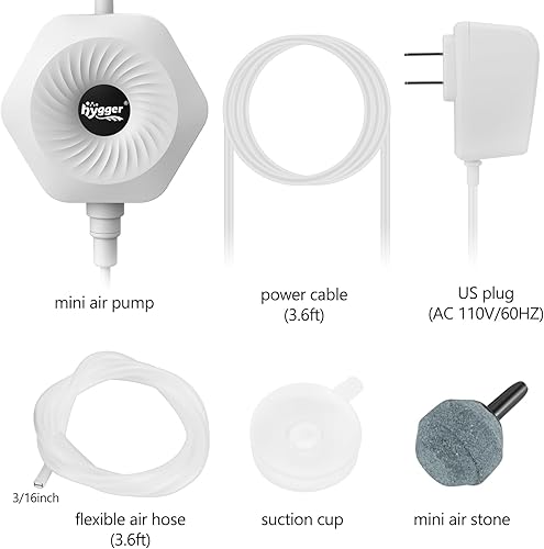 hygger Ultra Silent 1.5W Fish Bowl Aqaurium Mini Air Pump with Accessories, Oxygen Aerator Kit for Fish Tank 0.5-15 Gallon, Comes with 3/16 Inch Air Tubing, Air Stone, AC 110V/60HZ(White)