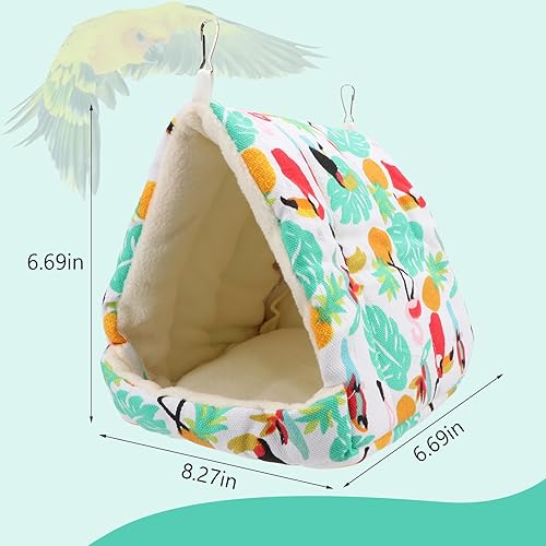 SIZE: 8.27x6.69x6.69in/21x17x17cm(LxWxH). Suitable for small and medium sized parrots such as Budgies, Cockatiels, Conures, Parakeets, Lovebirds, Hamsters.