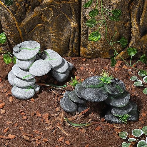 Versatile uses reptile hide - This gecko hide features both practicality and aesthetic appeal, perfectly meet various pet needs and suitable for small animals like lizards, gecko, bearded dragon, ball python, fish, turtles, frogs, etc. The realistic design creates a natural and engaging living space for your pets, making this aquarium hide a must-have accessory for any reptile habitat.