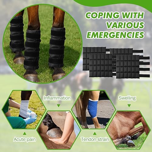 Exceptional Performance: these Ice Boots for Horse are made from durable Oxford cloth; One side is padded with polyester for effective insulation, while the other side is filled with gel for rapid cooling; They also come with a nylon ice pack and double-seal technology for complete leak-proof protection