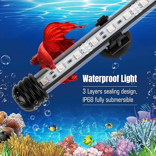【FULLY SUBMERSIBLE AND EASY TO INSTALL】This 11 inch LED aquarium fish tank light meets the IP68 waterproof standard and can be used underwater. It can be easily mounted on the smooth surface such as fish tank lid or background glass with upgraded suction cup. This 11 inch long aquarium led light is suitable for 10~20 gallon small fish tank.