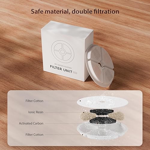 Cleaning Guide: We recommend that you clean your water dispenser once a week and change the filter cartridge once a monthMaterial Filtration: adopts a multilayer high-efficiency filtration system, which can effectively intercept impurities and hair, soften the water, remove the odor, and retain the minerals, so that pets can drink purer and sweeter-tasting water