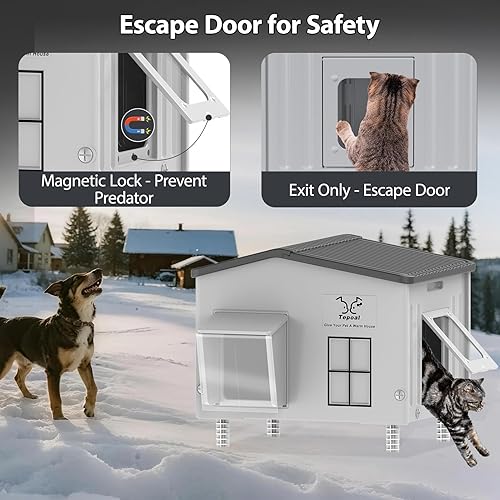 【100% Waterproof and Escape Door for Safety】- - Fully upgraded waterproof awning prevents rain from entering the house, the exit-only escape door allows cats to flee from predators in emergencies while keeping cold air out.