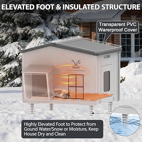 【Elevated Feet Design Avoids Soaking of Cat House Bottom】 - - No more worrying about exposure to ground snow & moisture or soaking in water. Our insulated outdoor cat house adopts an elevated design, which can always keep your kitten warm and dry, which is perfect for outdoor cats, community cats and feral cats in garages, porches, barns or patios.