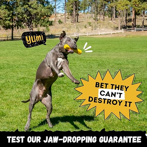 Virtually Indestructible — Lifetime Replacement Guarantee: No dog toy is truly indestructible — but this is as close as it gets. If it’s not the longest lasting toy your dog has ever had, you get a one-time replacement or refund. No sqeaks, no fluff, no BS.