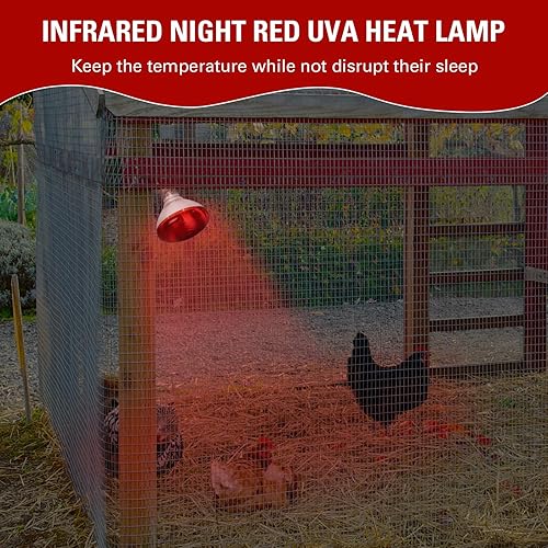 EFFICIENT HEATING: This infrared heat lamp focuses on creating a warm and healthy environment for chicken coop brooders, reptile pets and small animals. This heat lamp delivers powerful heating power efficiently and quickly, ensuring that your pets get enough heat in cold environments.