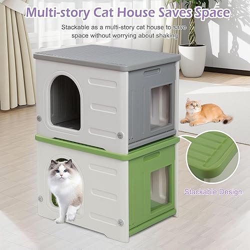 [Premium Material & Sturdy Structure]:Our plastic cat house is made of double-layer thick HDPE material, more sturdy than ordinary plastic, able to withstand cats' active behavior, providing them with a safe and comfortable resting space.