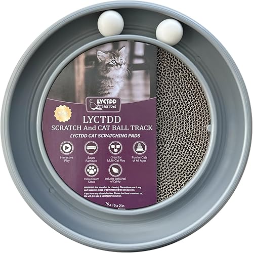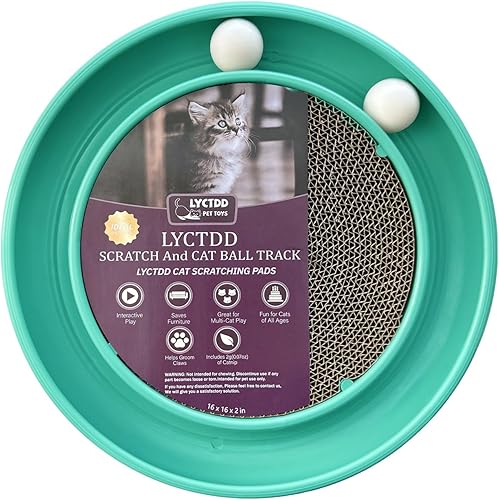 【Cat Scratching Board Set】:The round cat scratcher toy comes with 1 cat ball track base (16 inches in diameter),Toys for all kinds of big and small cats,1 round cat scratcher refill (11 inches in diameter),2 rolling cat toy balls,Preventing Loss,that keeps your cat entertained for hours.
