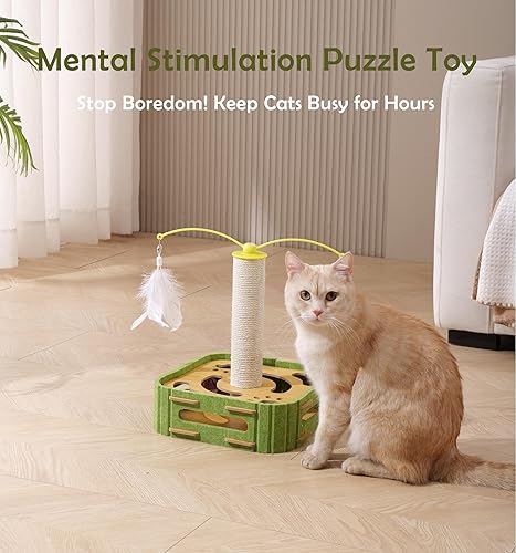 【Interactive Cat Toys for Indoor Cats】Keep your indoor cat entertained for hours! This cat puzzle toy challenges their hunting instinct with hidden spiral balls and surprises—perfect for cats that love to hunt or need mental stimulation.