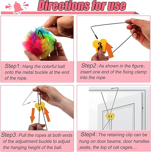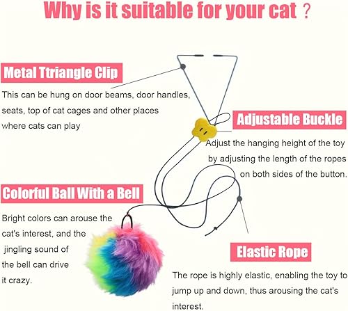 Multi-Functional Hanging Toy to Attract Your Cat’s Attention: This ball toy has bright colors and built-in bells creating a combines visual and sound stimulation. Whether playing alone or interacting with you, it provides lasting entertainment to your playful pets