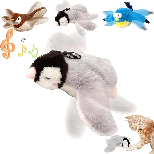【Simulated Chirping Bird Cat Toy】This cat toy features a realistic bird design with flapping wings and chirping sounds, designed to captivate and stimulate your cat's natural hunting instincts to hunt, pounce, chase. Making play exciting for your indoor cat
