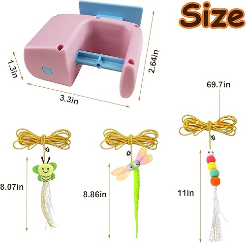 A perfect set with multiple usage options: The interactive cat enrichment toy contains a main toy body, a USB charging cable, a specification, 2pcs double-sided foam tapes for hanging and sticking, 2pcs loop-side tapes and 3pcs replacement bell pendants with string to let your feline have more fun