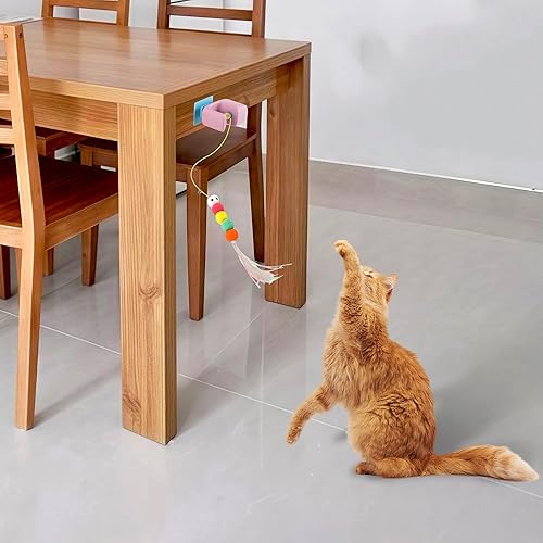 Booteely Interactive Automatic Cat String Toy This indoor hanging cat toy delivers effortless fun with one simple press: once turned on, its elastic cord automatically stretches and contracts, creating a lively, bouncing motion with the attached pendant. The dynamic movement naturally captures the curiosity of both kittens and adult cats, inviting them to pounce, chase, and leap in playful engagement adding daily enjoyment and helping expend their excess energy.