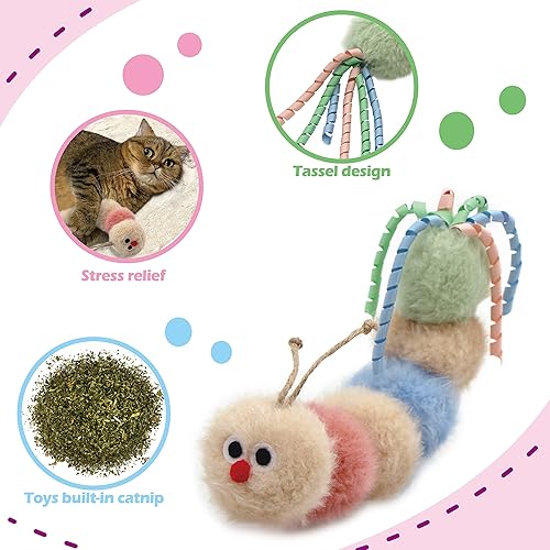 【Cute & Funny Cat Toy】These toys are made in the shape of caterpillars. The fluffy texture and curly shapes attract cats to chase, bat and carry. Playing the toy, you can increase the interaction between you and your pet.
