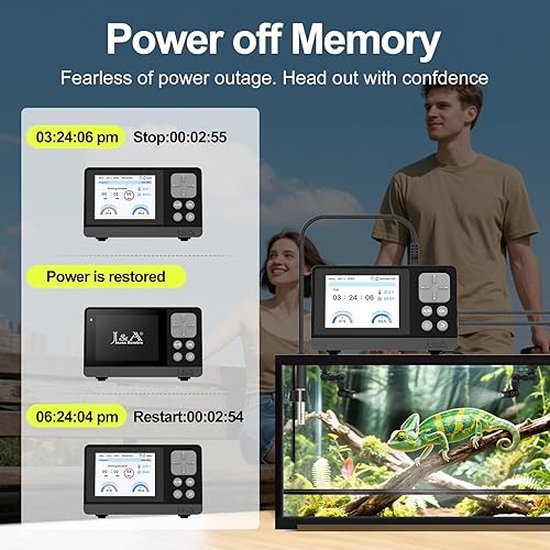Power-off Memory: The power off memory function ensures the auto mister for reptiles starts working immediately after power is restored, never worry about losing your misting settings keeping your terrarium inhabitants thriving and healthy