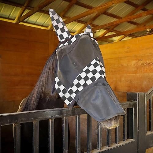 Full Coverage Design for Horses - Mesh fly mask with soft ear covers and nose panel offers extended protection from insects, dust, and debris—ideal for daily use in stalls, pasture, trailer, or turnout.