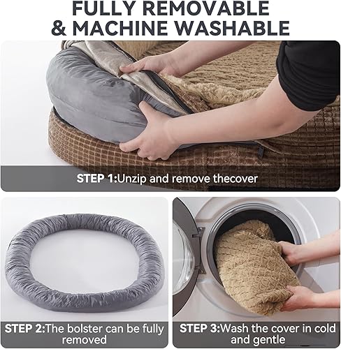 【Waterproof & Easy to Clean】This dog bed is designed with a waterproof inner lining that protects the foam from spills, accidents, and everyday moisture. The outer cover features a smooth double zipper design and is fully removable, making cleanup quick and easy. Just unzip, toss it in the washing machine, and enjoy a clean, fresh bed for your furry friend.